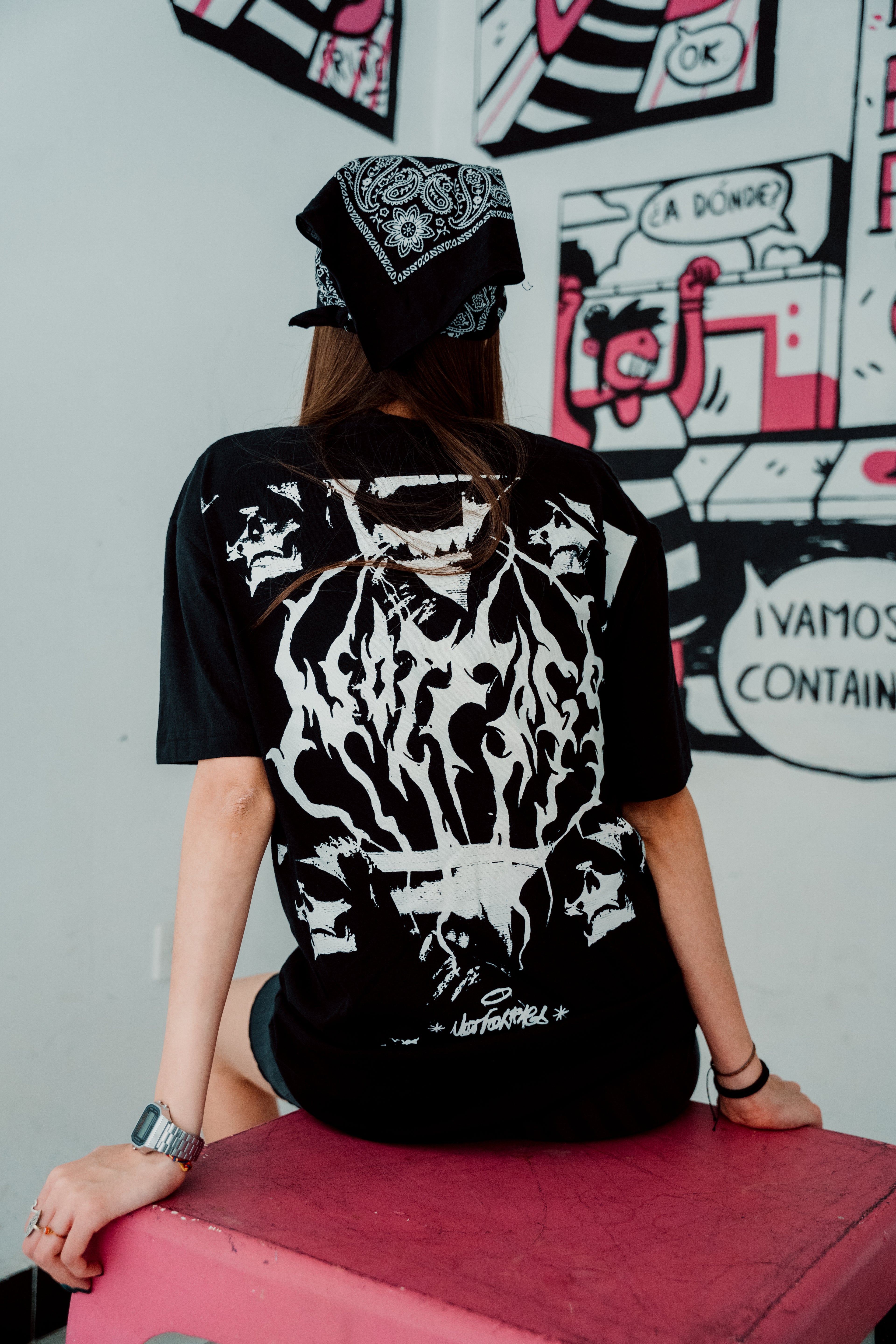 "Amé el diseño con Baphomet que pedí. Se siente poderosa, diferente... como si te pusieras una armadura oscura. Además, la tela es súper cómoda y el estampado aguanta las lavadas sin fallar."